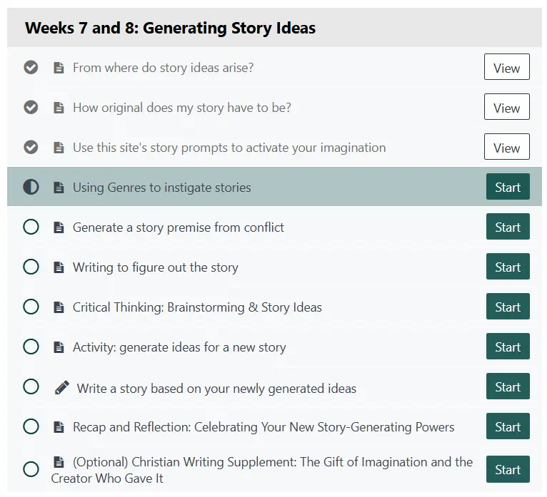 Each four-week section centers on a single, clearly defined lesson and one completed story: